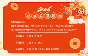 为了确保您的订单能顺利发出,现将春节期间的发货及接单安排公告如下: